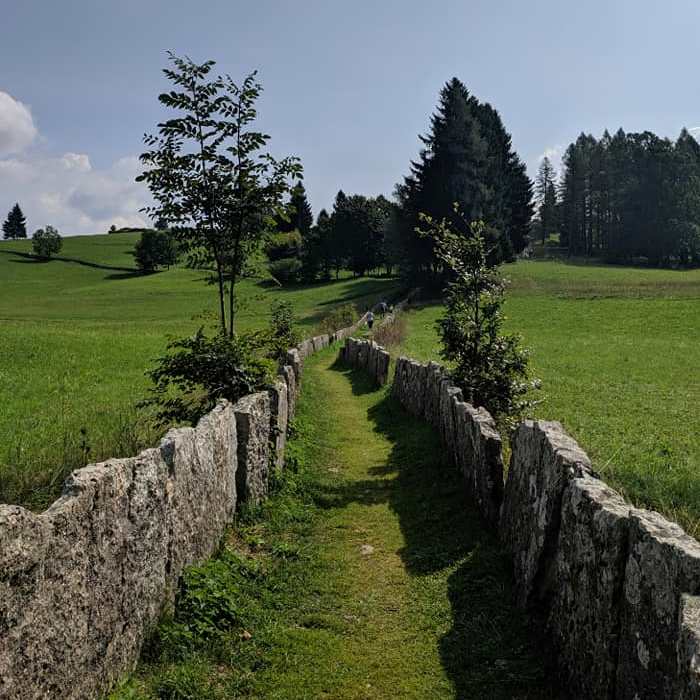 Opera straordinaria di ingegneria militare che conduce dalla Bocchetta Campiglia alle ‘Porte del Pasubio’ (m.1935)(rifugio gen. Achille Papa) e che consentiva l’approvigionamento delle truppe arroccate sul Pasubio con un arditissimo percorso al riparo dalle azioni nemiche.