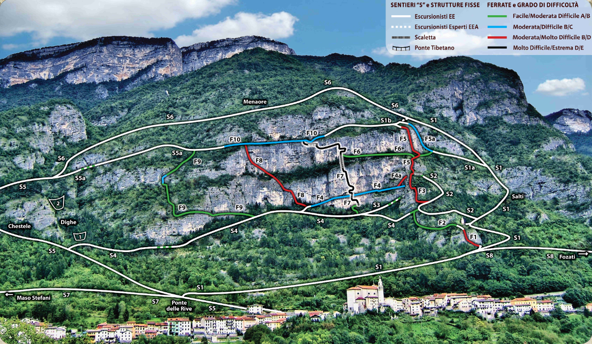 A San Pietro Valdastico nell’alta valle dell’Astico, si possono trovare i sei percorsi degli Anelli delle Anguane. Rivolti ad adulti esperti, dotati di attrezzatura alpinistica abbligatoria ed un’ottima conoscenza del suo utilizzo, sono composti da un intreccio di vie ferrate verticali.